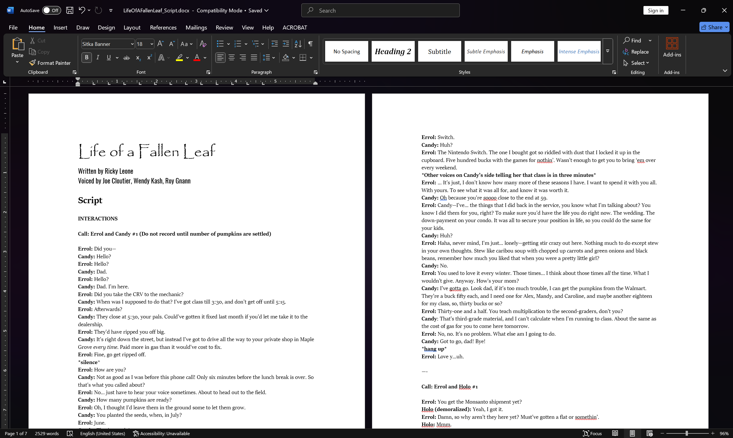 Life of a Fallen Leaf: Script (PDF Download)