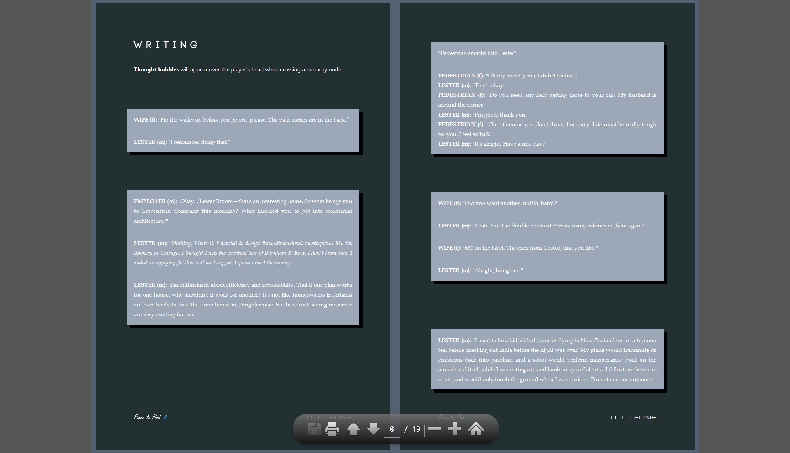 - Writer: Created the main character, wrote the backstory, opening narrative sequence, win condition text, and all publishing copy including logline and synopsis.