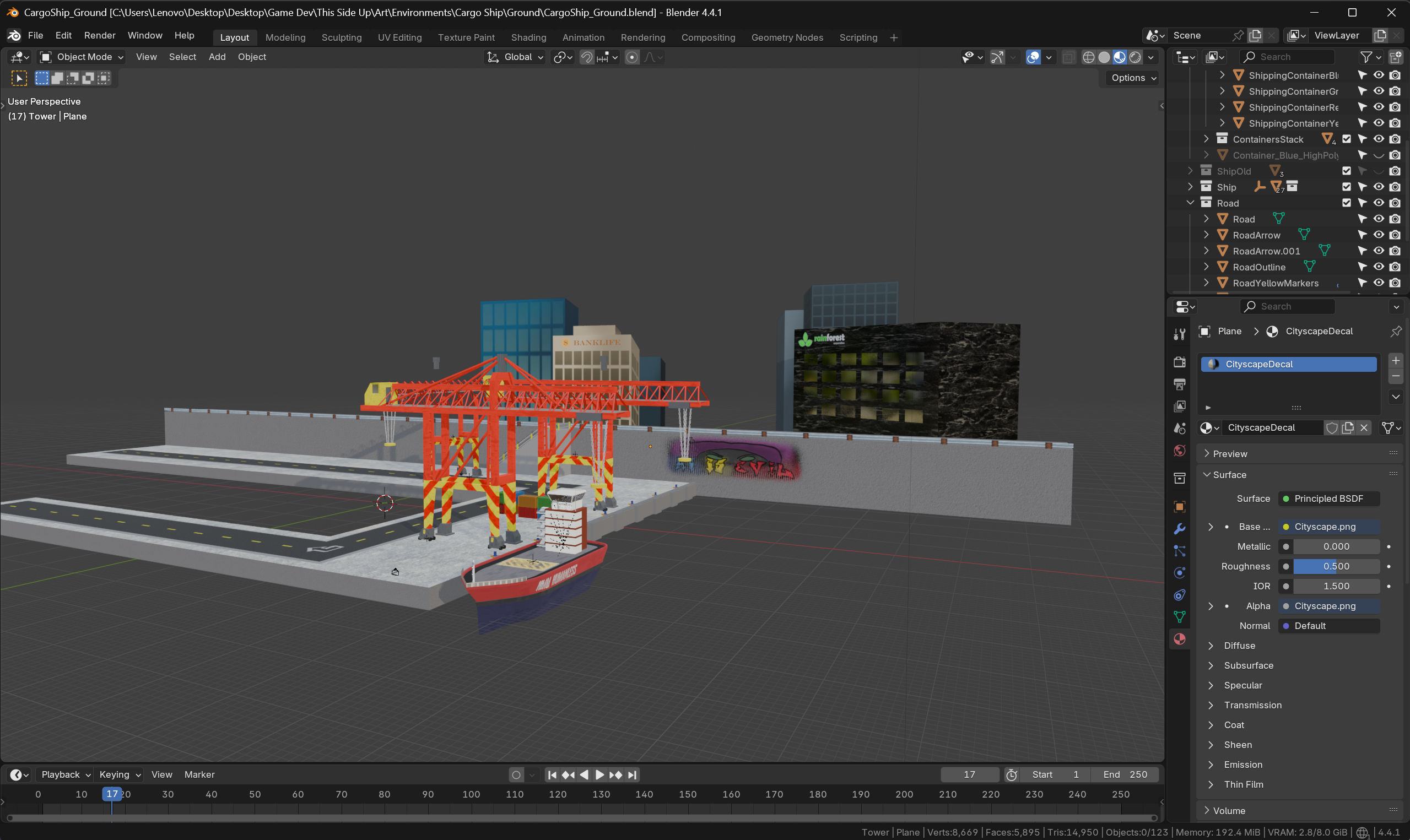 - 3D Artist + Environment Designer: Created the port environment, inclusive of modeling the ships, cranes, containers, and all 2D assets.